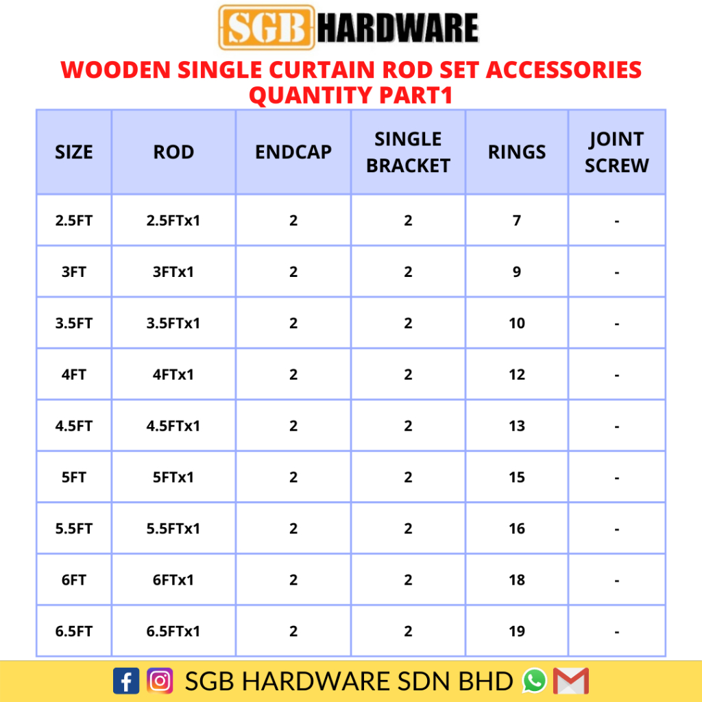 ARA Curtain Rod Set(No Rings/With Rings)- Batang Langsir/Wooden Rod/Kayu Langsir/Rod Langsir tingkap