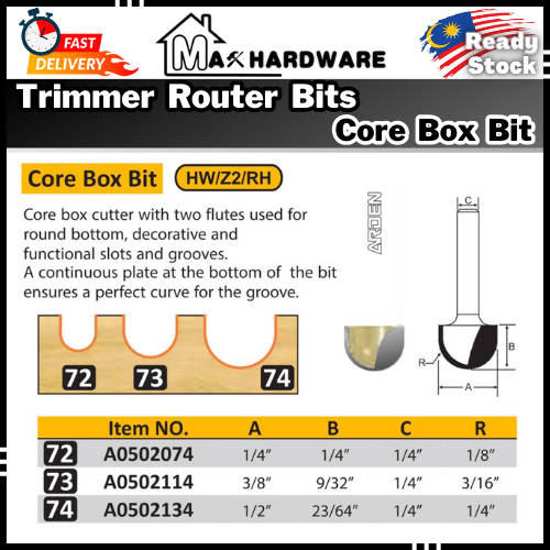 ARDEN Router Bit - Core Box Bit ( #72 / #73 / #74 )