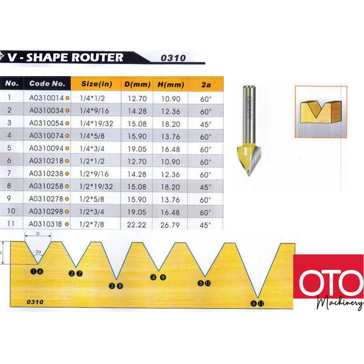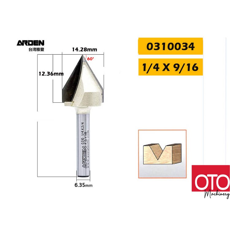ARDEN V TYPE SLOTTING CUTTER 0310 V BIT V SLOT CUTTER V SHAPE CUTTER 60 DEGREE