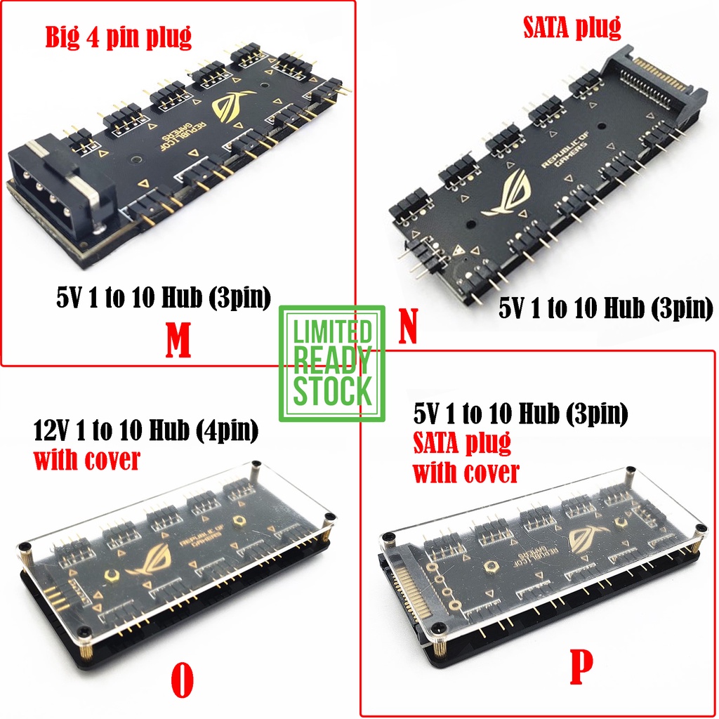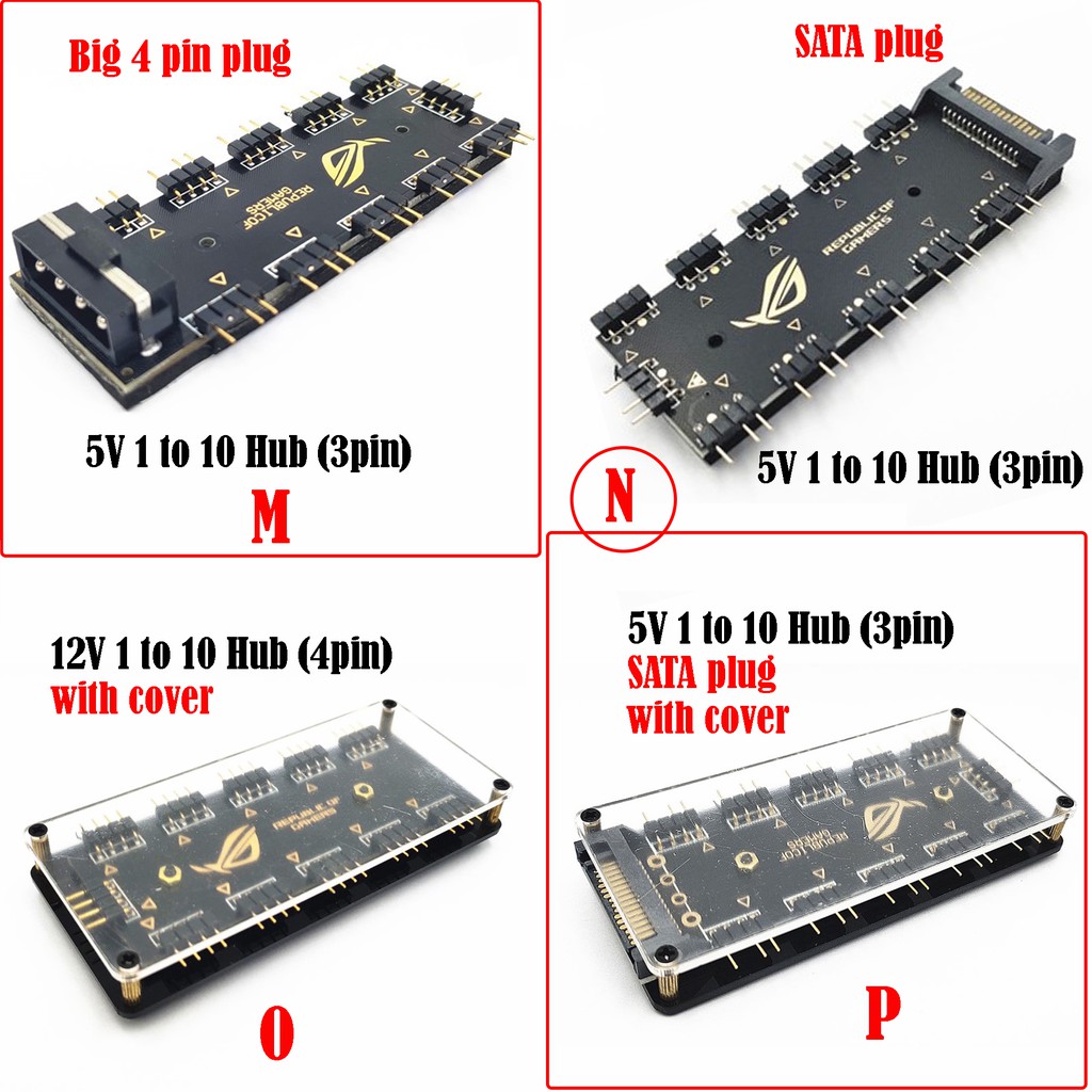 ARGB Splitter ARGB (5V 3Pin) RGB (12V 4Pin) Splitter Cable Extension Fan Hub Case Fans Adapter Sync Motherboard 10 Ports