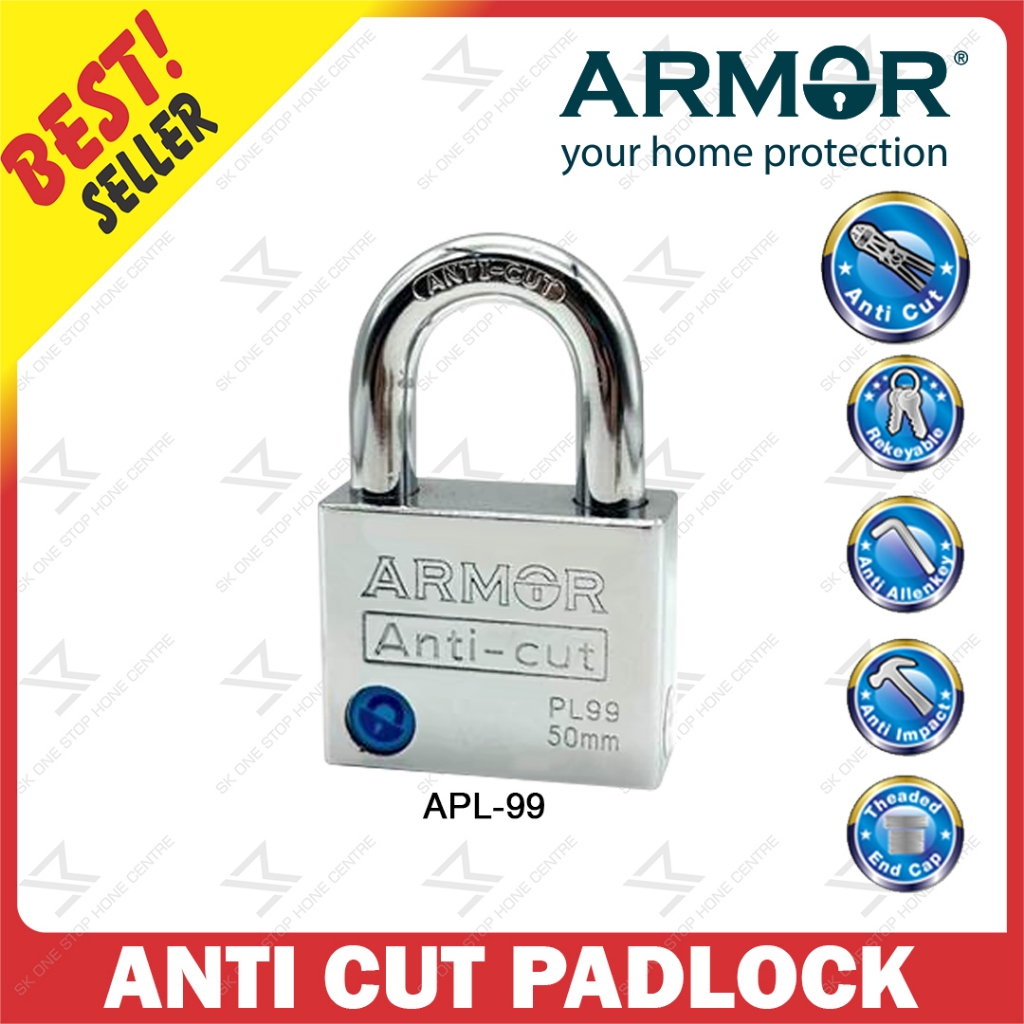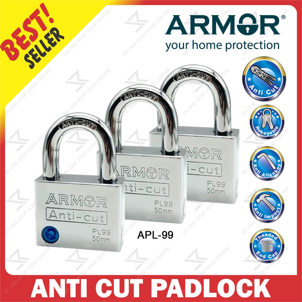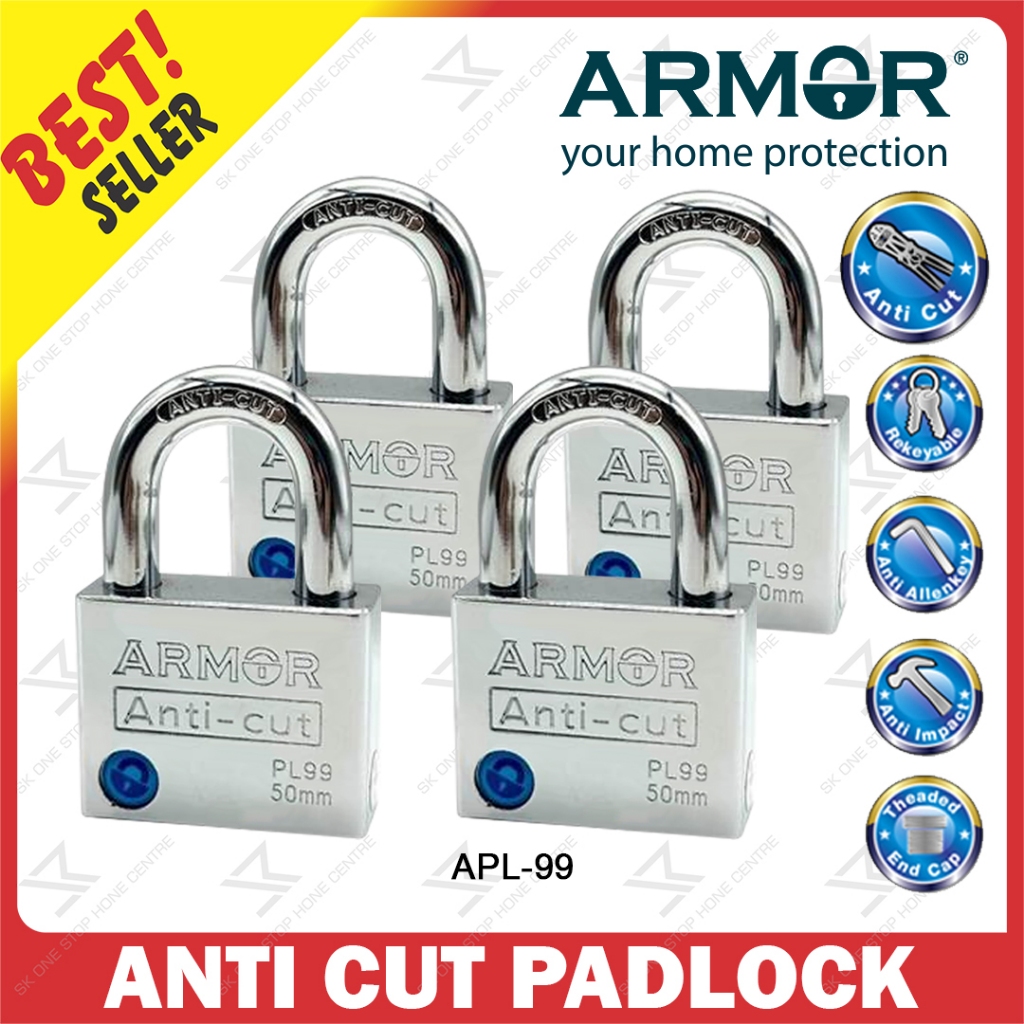 ARMOR 1pcs / 2pcs / 3pcs / 4pcs / 5pcs ANTI CUT PADLOCK APL-99 50mm HARDENED STEEL BODY