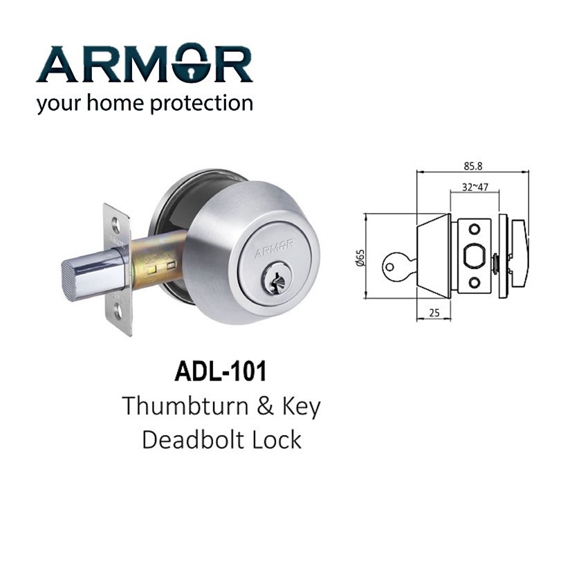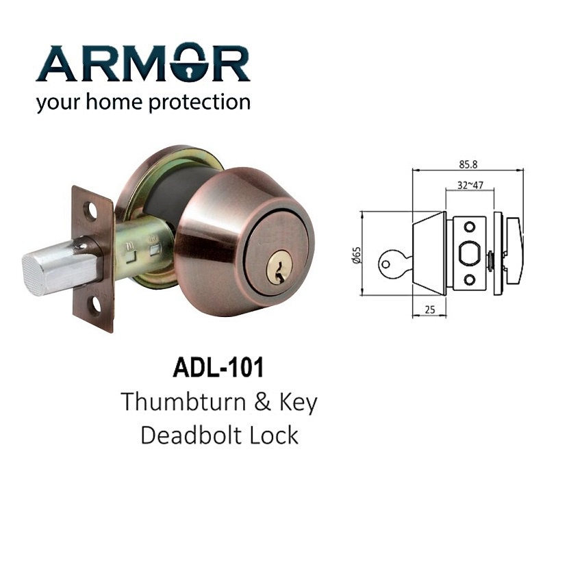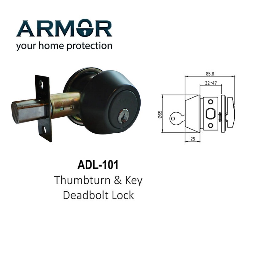 ARMOR THUMBTURN KEY DEADBOLT LOCK - ADL-101/102/103-MB / AC / SS / MG
