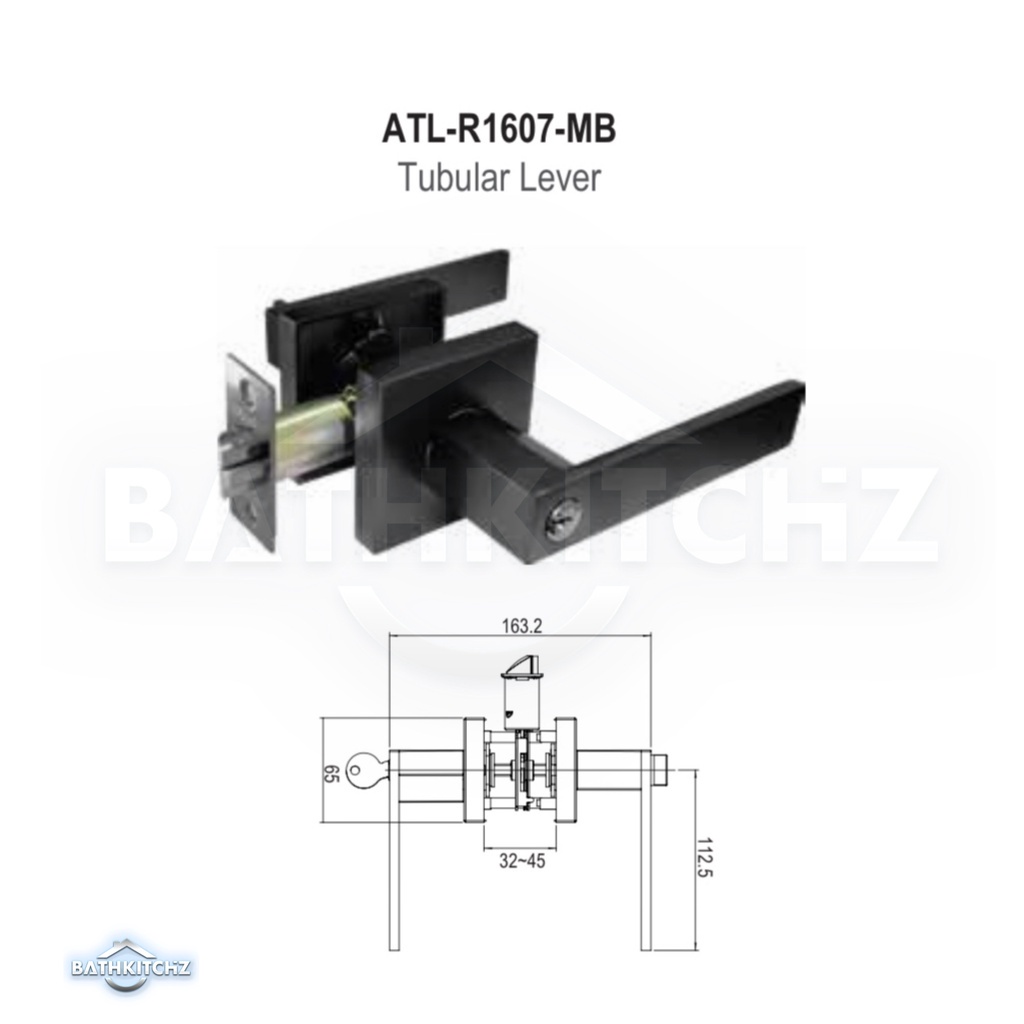 ARMOR Tubular Lever Door Lock with Key Matt Black ATL-R1506/ATL-R1607 Handle Lever