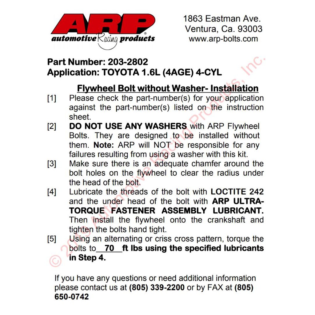 ARP Flywheel Bolts Kits Toyota 4AGE 16V 20V Toyota 2JZ