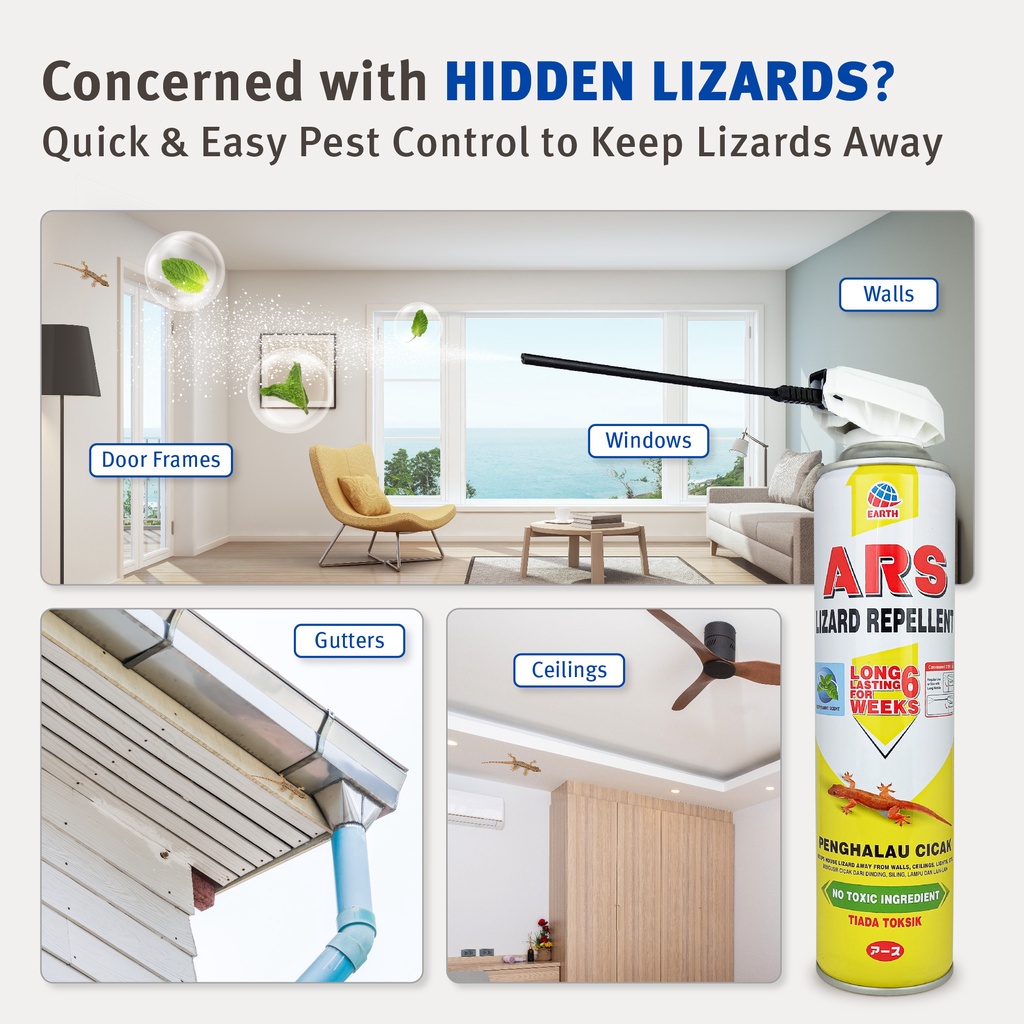 ARS Lizard Repellent Spray No Toxic 500ml Natural Extract of Peppermint Oil Repel Lizards Effectively Without Killing