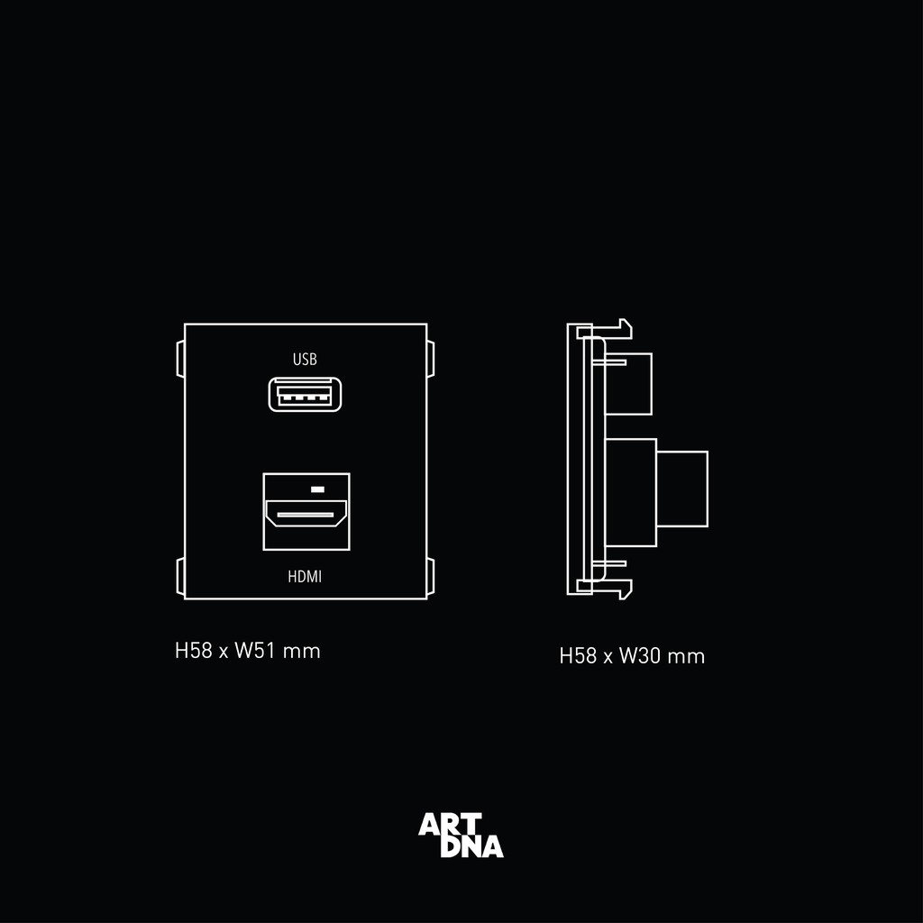 ART DNA Model A77 HDMI + USB Socket Black design switch Modern Light Beautiful Power Plug