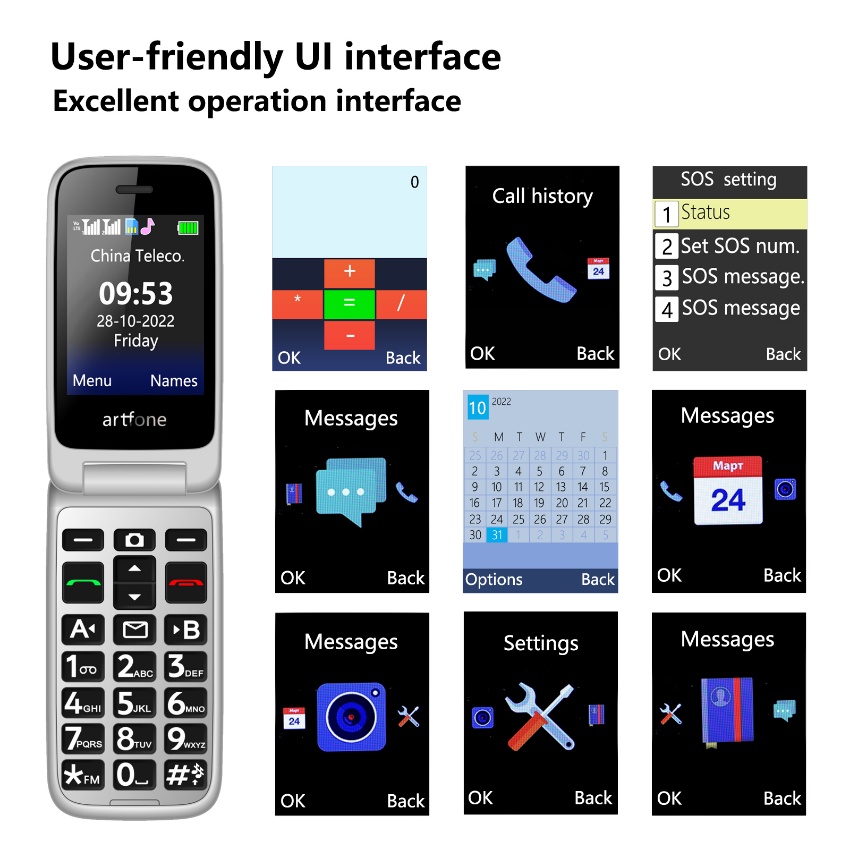 ARTFONE 4G LTE Senior Flip Phone G6,Charging Dock Unlocked Sim Card,Speed Dial,Big Button,Big Font,English and Chinese,2.4inch Color Dual LCD Display,Senior Citizen Backup Phone
