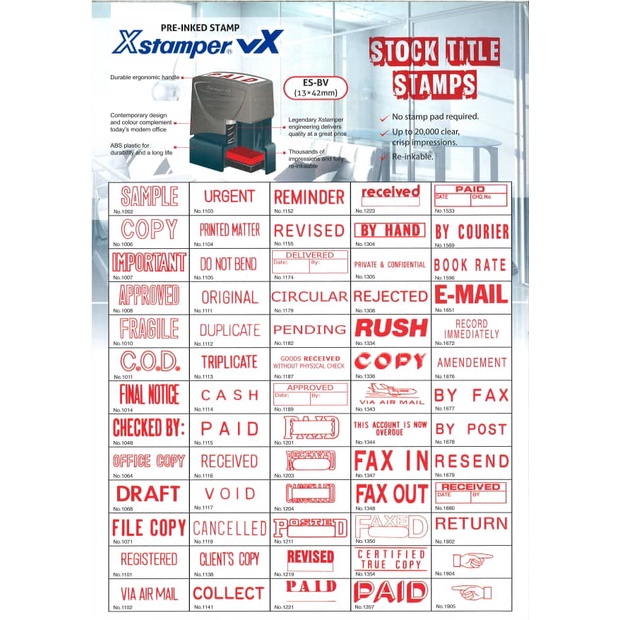 ARTLINE XSTAMPER VX - Pre-Inked Office Use Stamps (Red Ink)