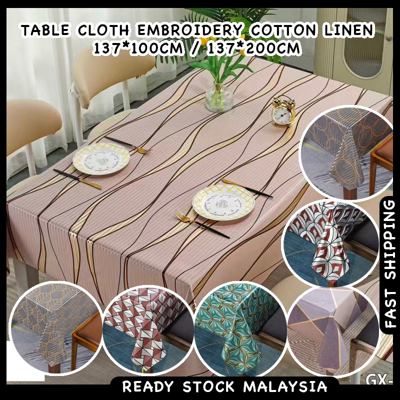 AS Table Cloth Embroidery Cotton Linen Table Cover Tablecloth Kitchen Dining Room Kain Alas Meja Makan