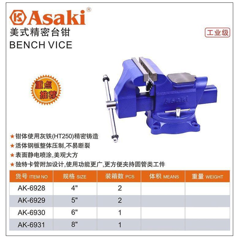 ASAKI HEAVY DUTY SWIVEL BASE BENCH VISE 5",6"
