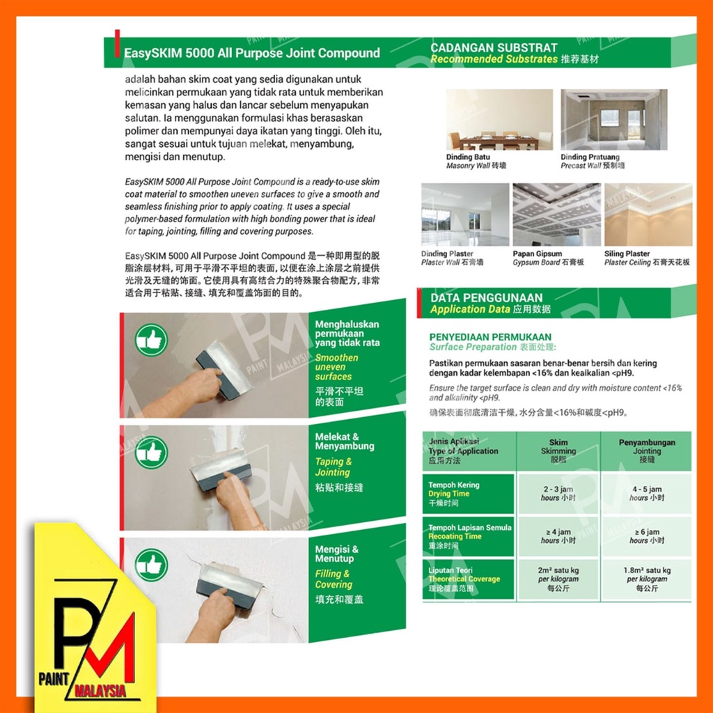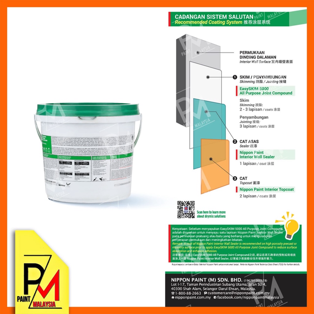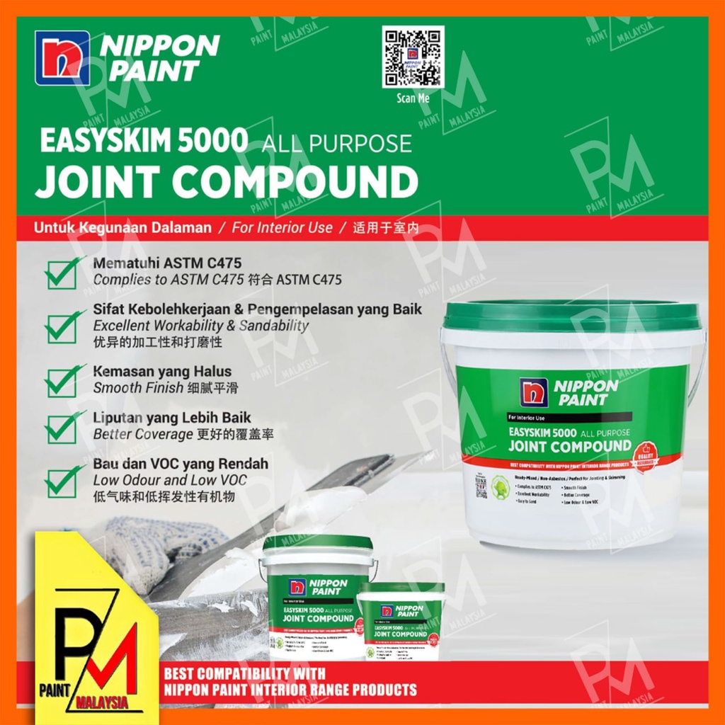 ASG/Nippon EasySkim Joint Compound 5KG Cement Plaster Ceiling Simen Putih Tutup Lubang Dinding