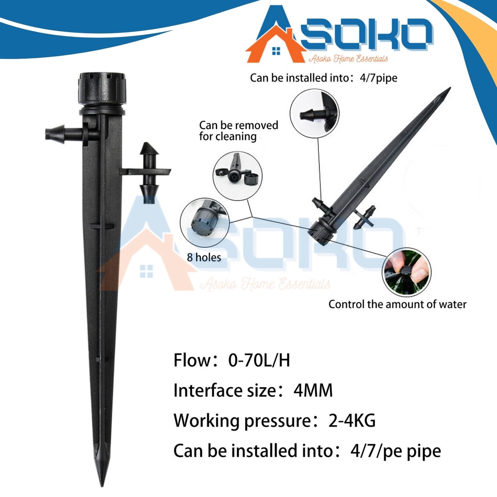 ASOKO Adjustable dripper bubbler C/W stick + Nipper 3mm/5mm, Water sprinkler, irrigation watering system Premium Quality