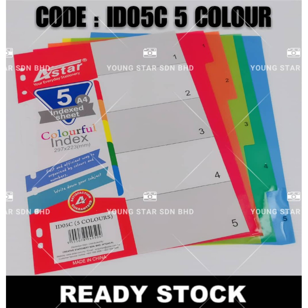 ASTAR A4 COLOURFUL PP/PLASTIC INDEX DIVIDER ID05C / ID10C / ID12C