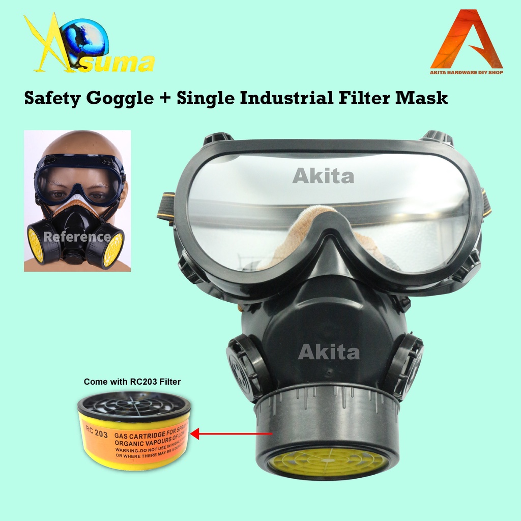 ASUMA Single Industrial Filter Mask & Safety Goggle, Safety Equipment Chemical Respirator Mask, Anti-Dust Chemical Paint