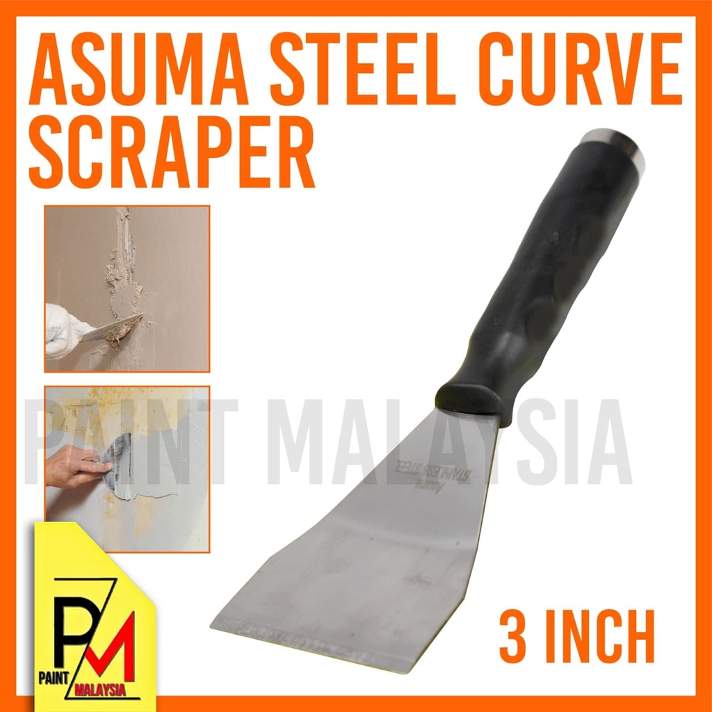 ASUMA Stainless Steel Scraper 3 Inch Heavy Duty Scraper Steel Curve Wall Scraper Putty Knife Wall Plastering Pengikis