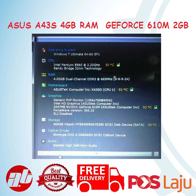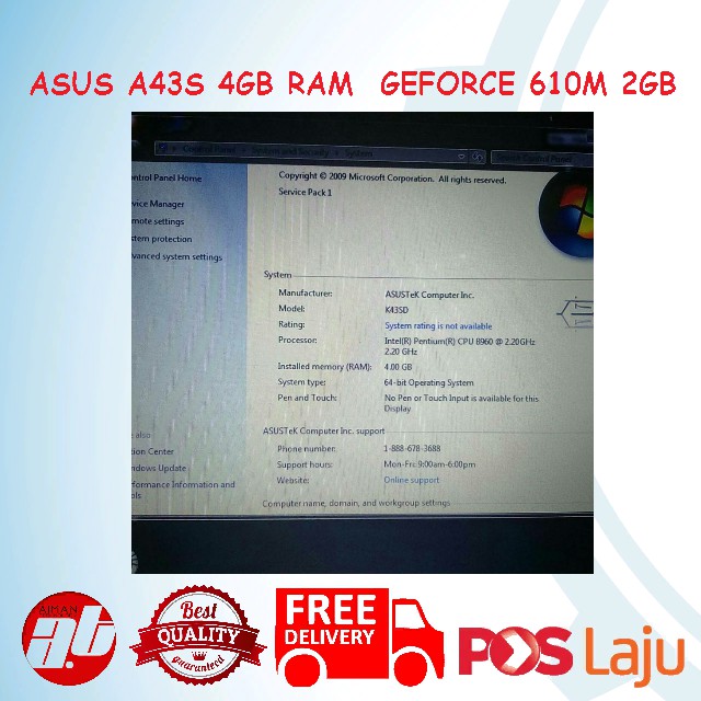 ASUS A43S 4GB RAM nVidia GeForce 610M 2GB