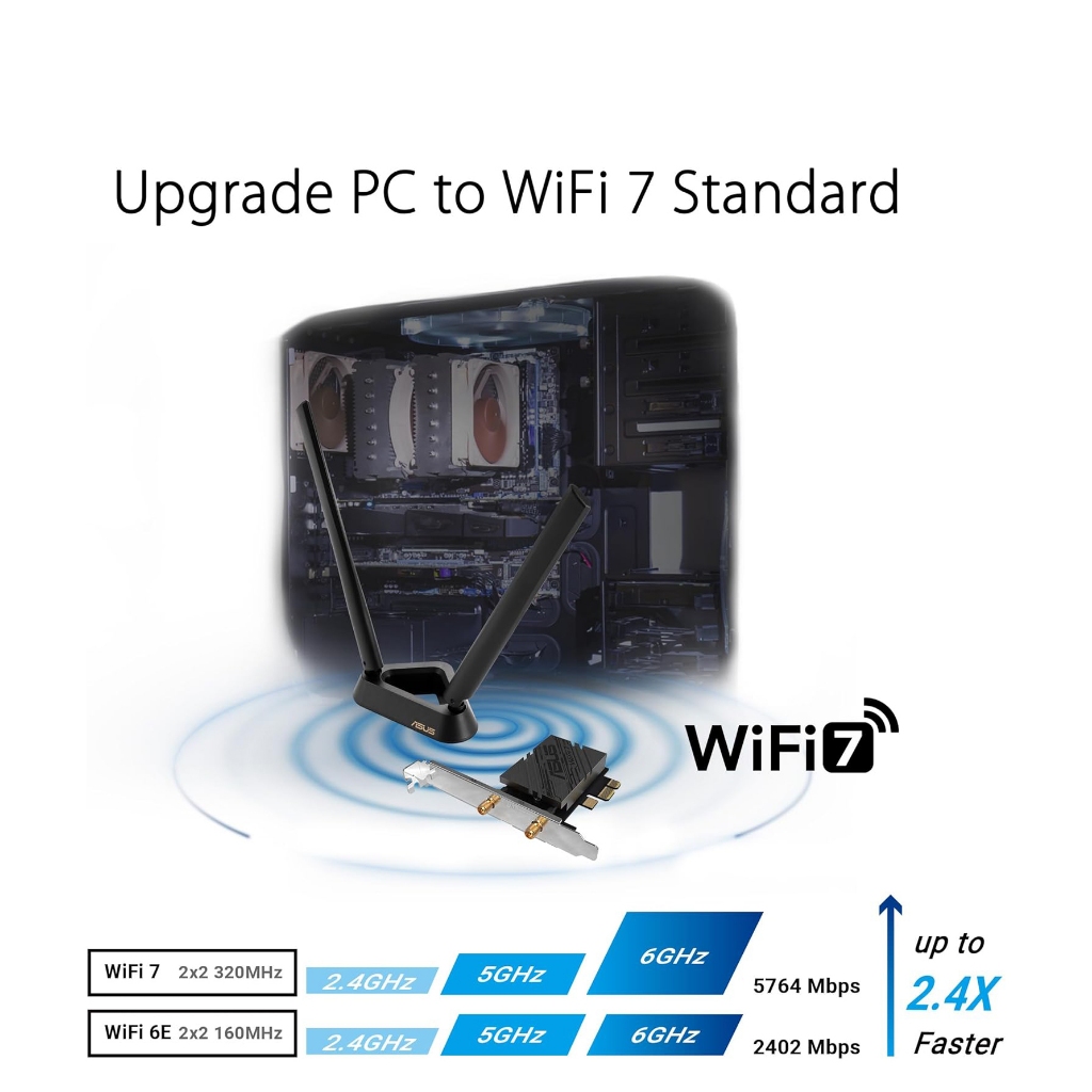 ASUS PCE-BE92BT WiFi 7 PCIE Wireless Adapter BE9300 Tri-Band 6GHz Bluetooth 5.4 External Antenna