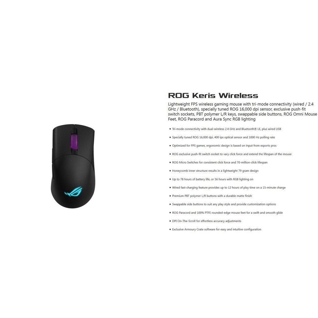 ASUS P513 ROG KERIS WIRELESS GAMING MOUSE (WITH TRI-MODE CONNECTIVITY)