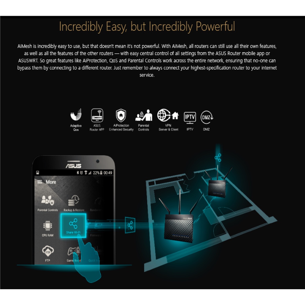 ASUS RT-AC68U AiMesh AC1900 Dual Band WiFi System Router (Refurbished/Used)