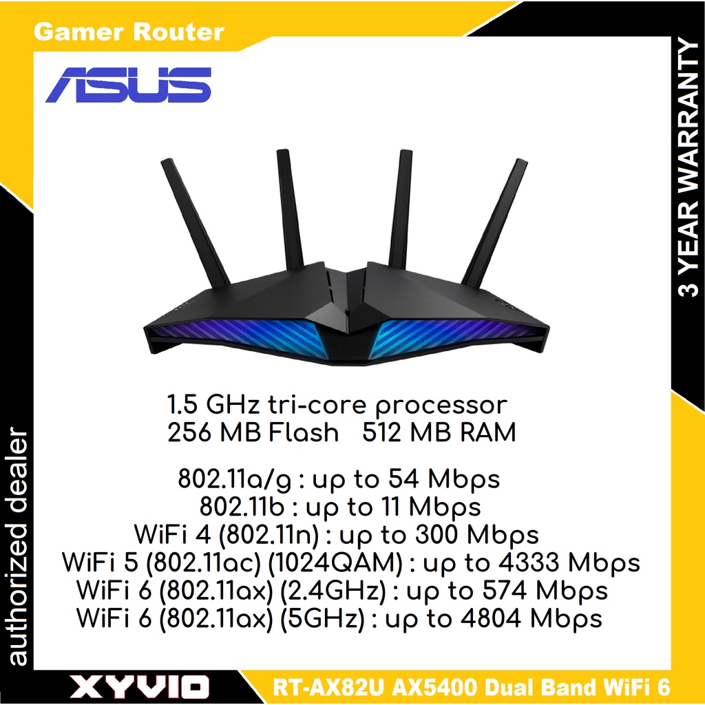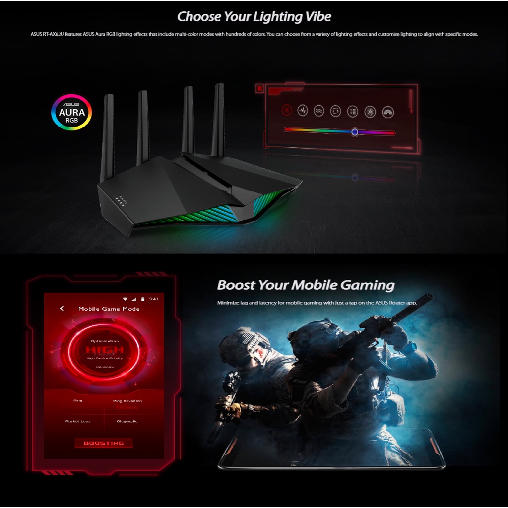 ASUS RT-AX82U | RT-AX82U GD Dual Band AX5400 WiFi 6 AiMesh RGB Gaming Router