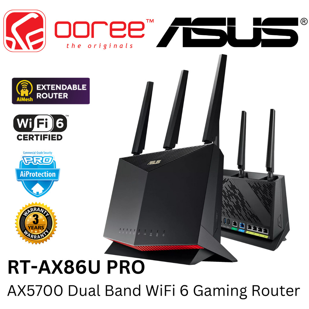 ASUS RT-AX86U PRO AX5700 DUAL BAND WIFI 6 GAMING ROUTER WITH 2.5G PORT, GAMING PORT, MOBILE GAME MODE, AIPROTECTION PRO