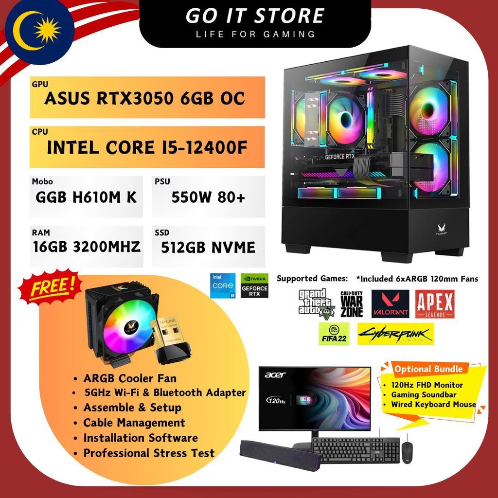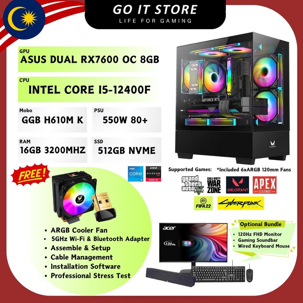 ASUS RTX5060 / RX7600 / RTX3050 INTEL GAMING PC SET ALL NEW (16GB RAM / 512GB NVME SSD) 3 YEARS WARRANTY