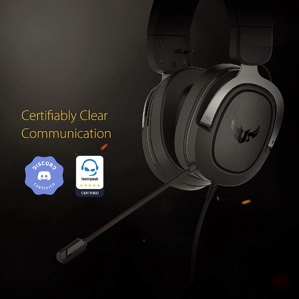 ASUS TUF GAMING H3 GUN METAL WIRED 3.5MM GAMING HEADSET WITH 7.1 VIRTUAL SURROUND SOUND, LIGHTWEIGHT COMFORT DESIGN, FAST-COOLING EAR CUSHIONS, ASUS ESSENCE DRIVERS