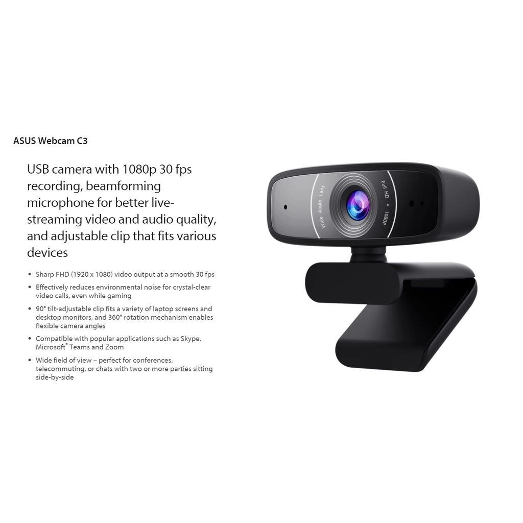 ASUS Webcam C3 - FHD 30 FPS Recording Beamforming Microphone Wide-angle USB Camera