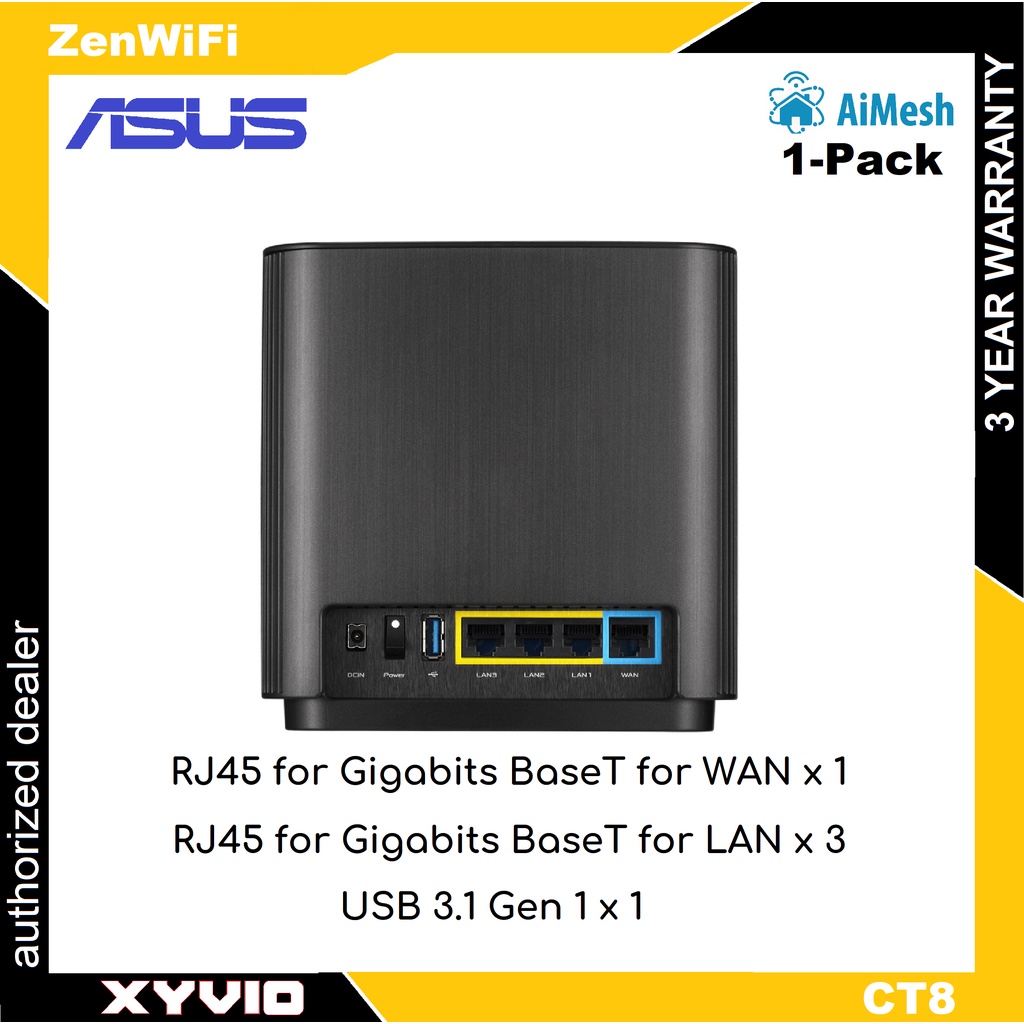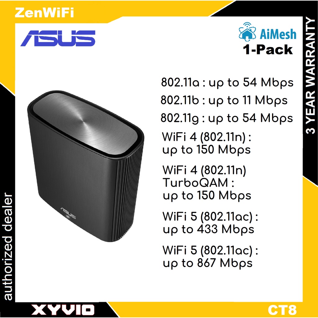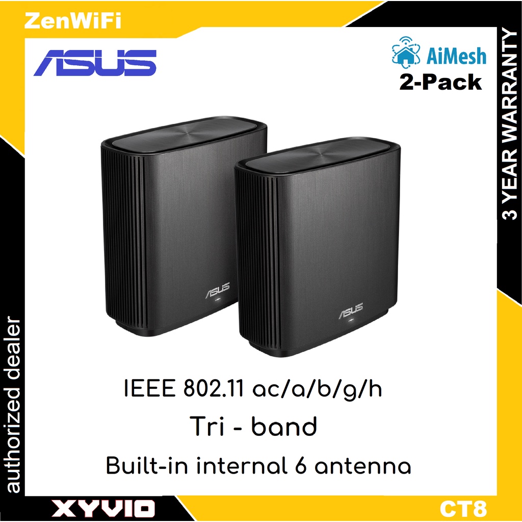 ASUS ZenWiFi CT8 1-Pack | 2-Pack AC3000 Mesh Router Tri-band WiFi Router Whole Home Mesh AiMesh WiFi System