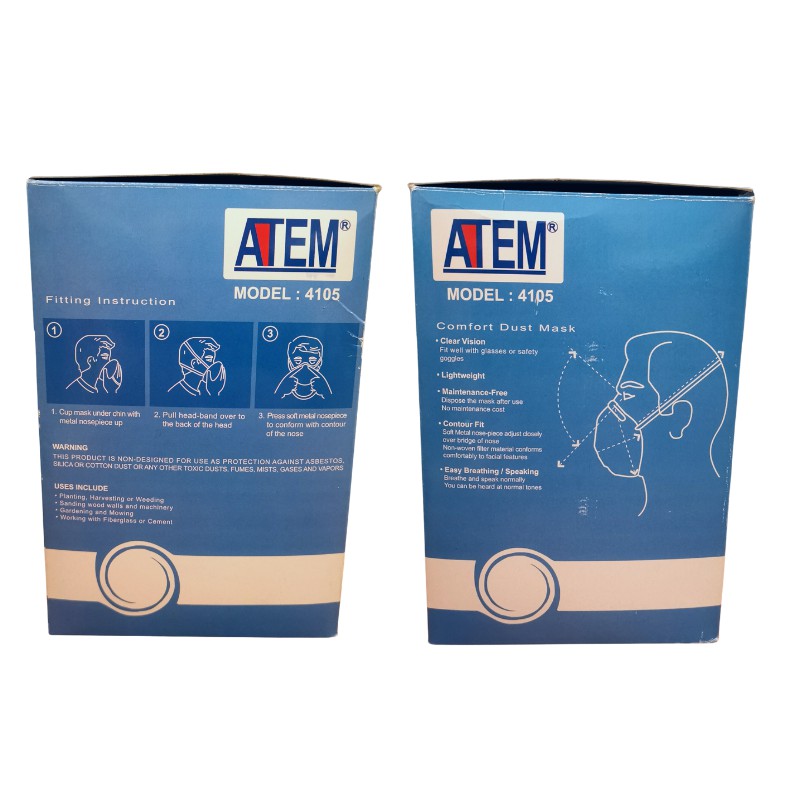 ATEM 4105 Dust Mask Thick Polyester Water Resistant No Formalin No Synthetic Resin(50pcs/box) / 1pc