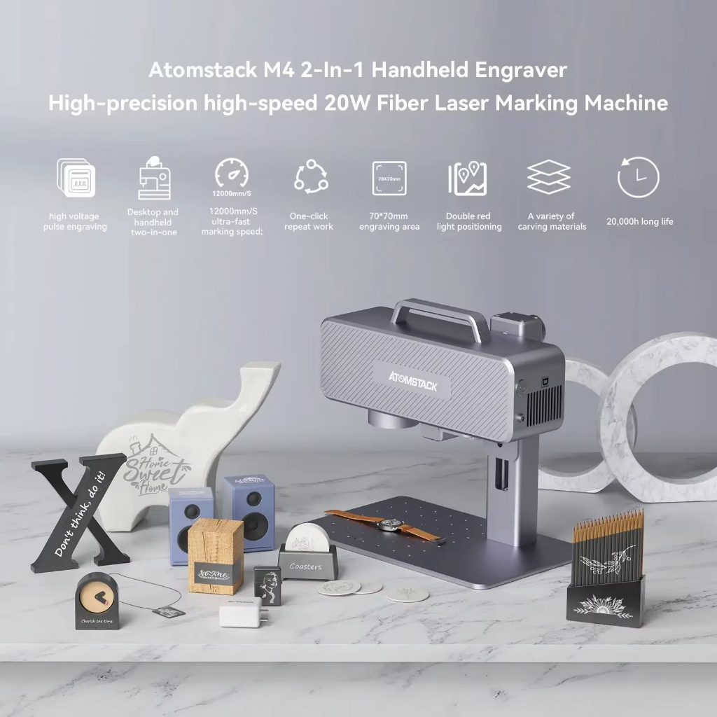 ATOMSTACK M4 Infrared Laser Engraver Fast Speed Desktop Infrared Marking Machine 70x70mm Area for All Metal Plastic Red