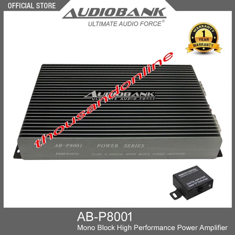 AUDIOBANK CAR AUDIO AB-P8001 MONO BLOCK HIGH PERFORMANCE POWER AMPLIFIER
