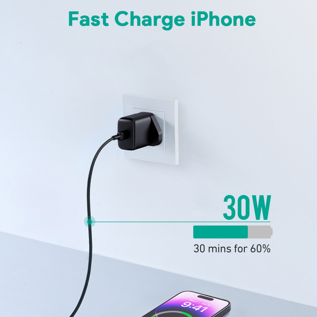 AUKEY PA-R1P Swift 30W Nano Wall Charger with PPS Samsung Super Fast Charging
