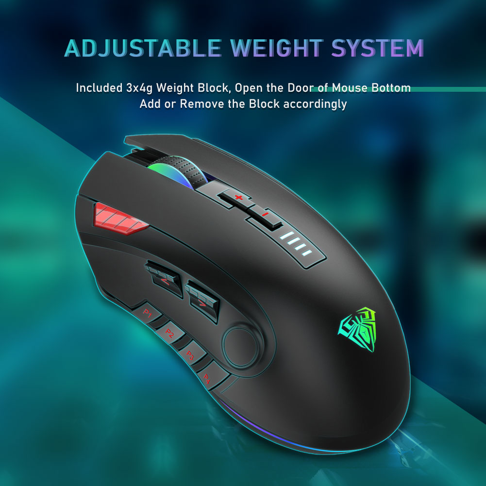AULA H512 Gaming Mouse 6 Programmabl Side Buttons Colorful Lighting 6DPI Adjustable Weight System For PC Laptop Computer