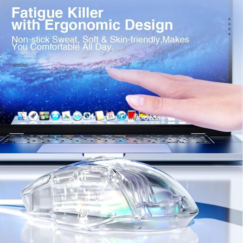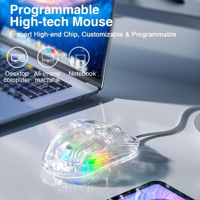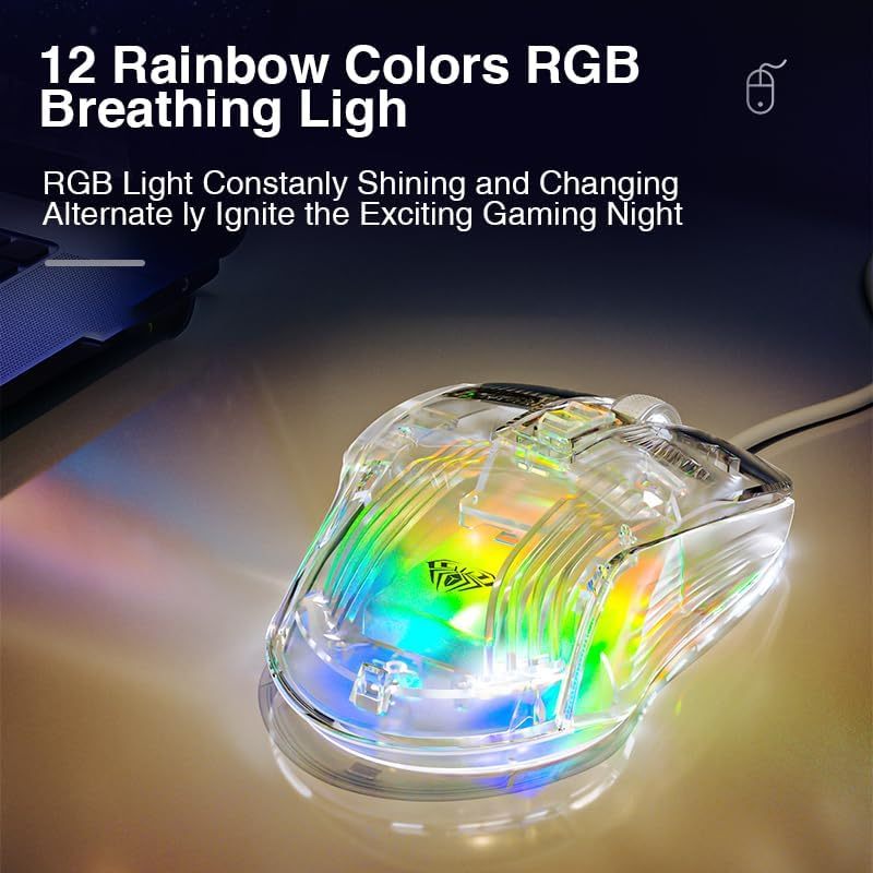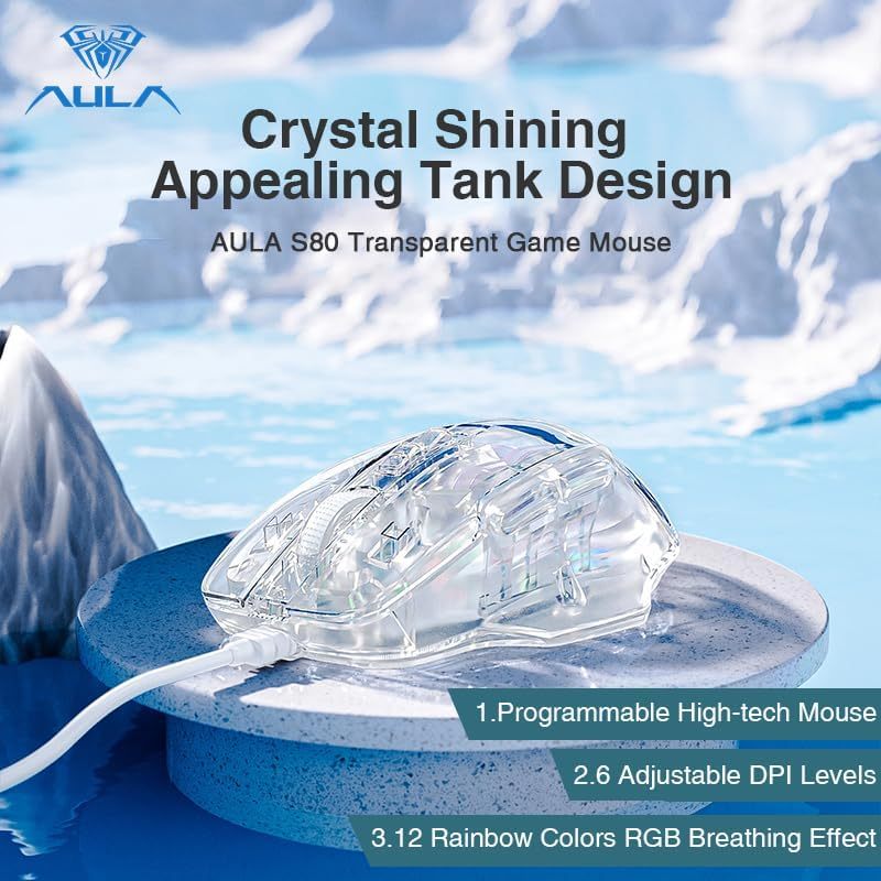 AULA S80 RGB BACKLIT OPTICAL WHITE TRANSPARENT WIRED GAMING MOUSE