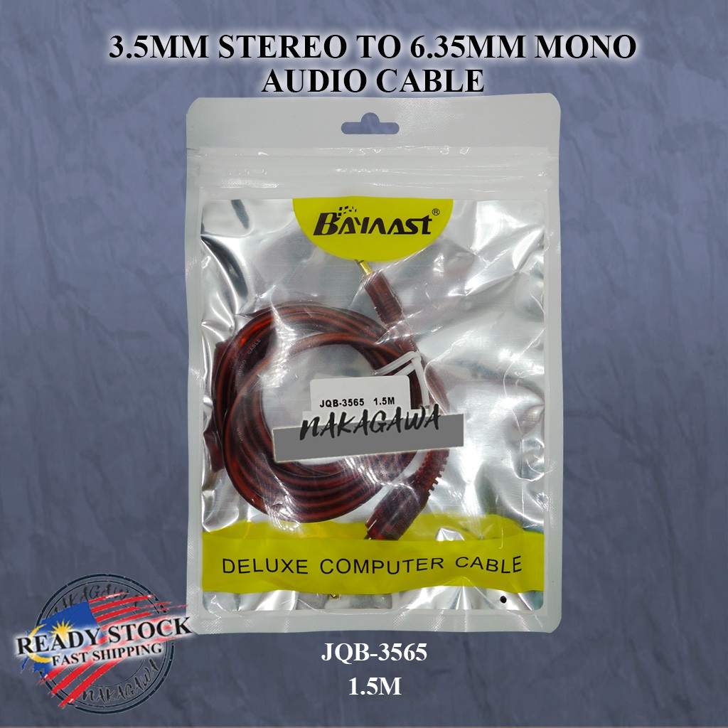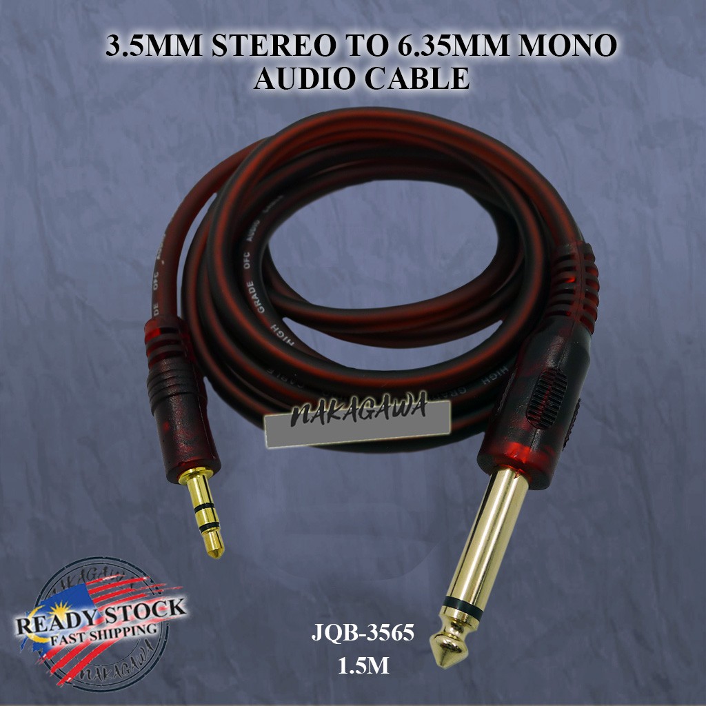 AUX CABLE 3.5MM STEREO PLUG / SOCKET TO 6.35MM MONO PLUG / SOCKET JQB-3565 - 1.5M / 3M
