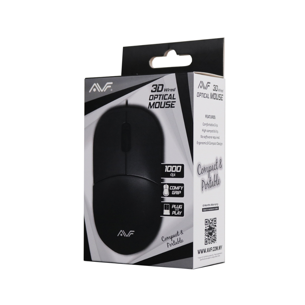 AVF 3D EU100 BLACK / RED 1000dpi Wired USB Mouse AM-E100U Office Normal Mice