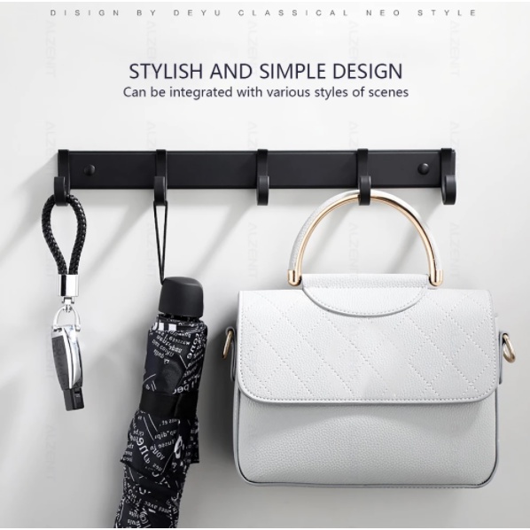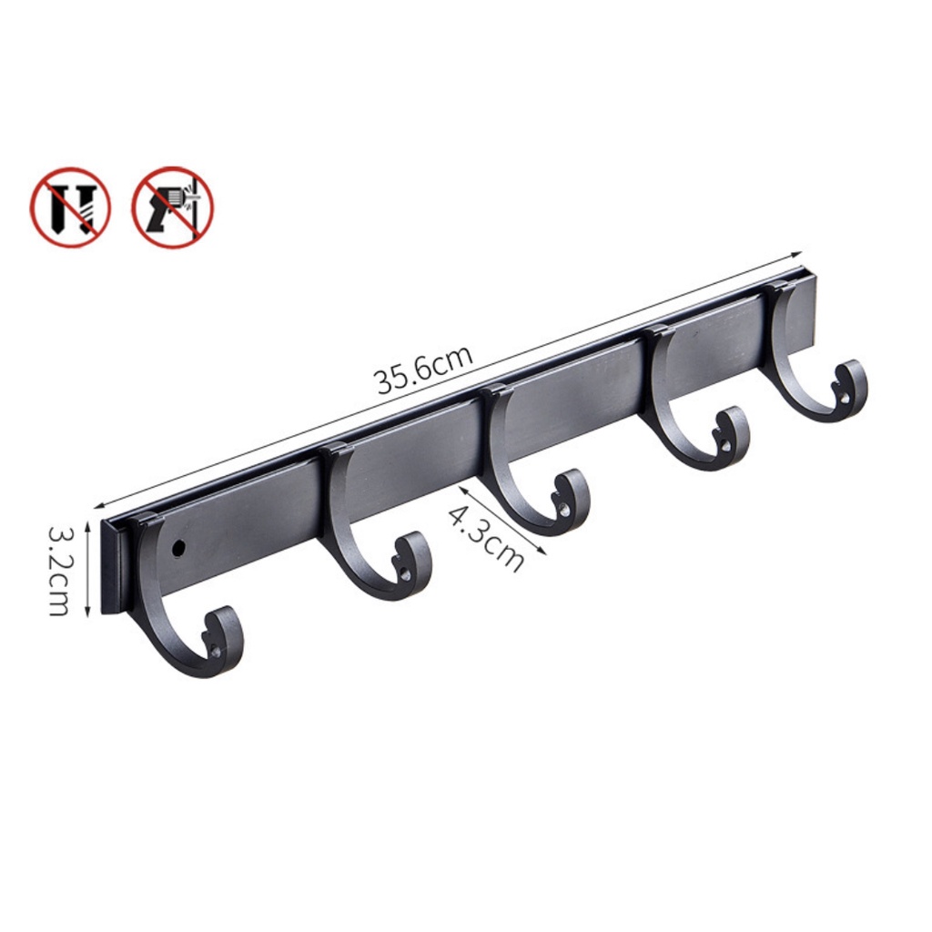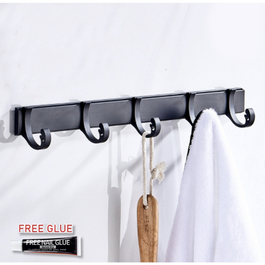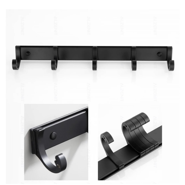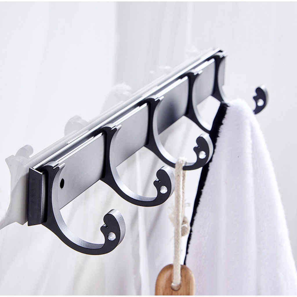AVI Black Aluminium Bathroom Clothes Towel Hanger Sliding Hooks Wall Mounted Toilet Coat Rack Waterproof