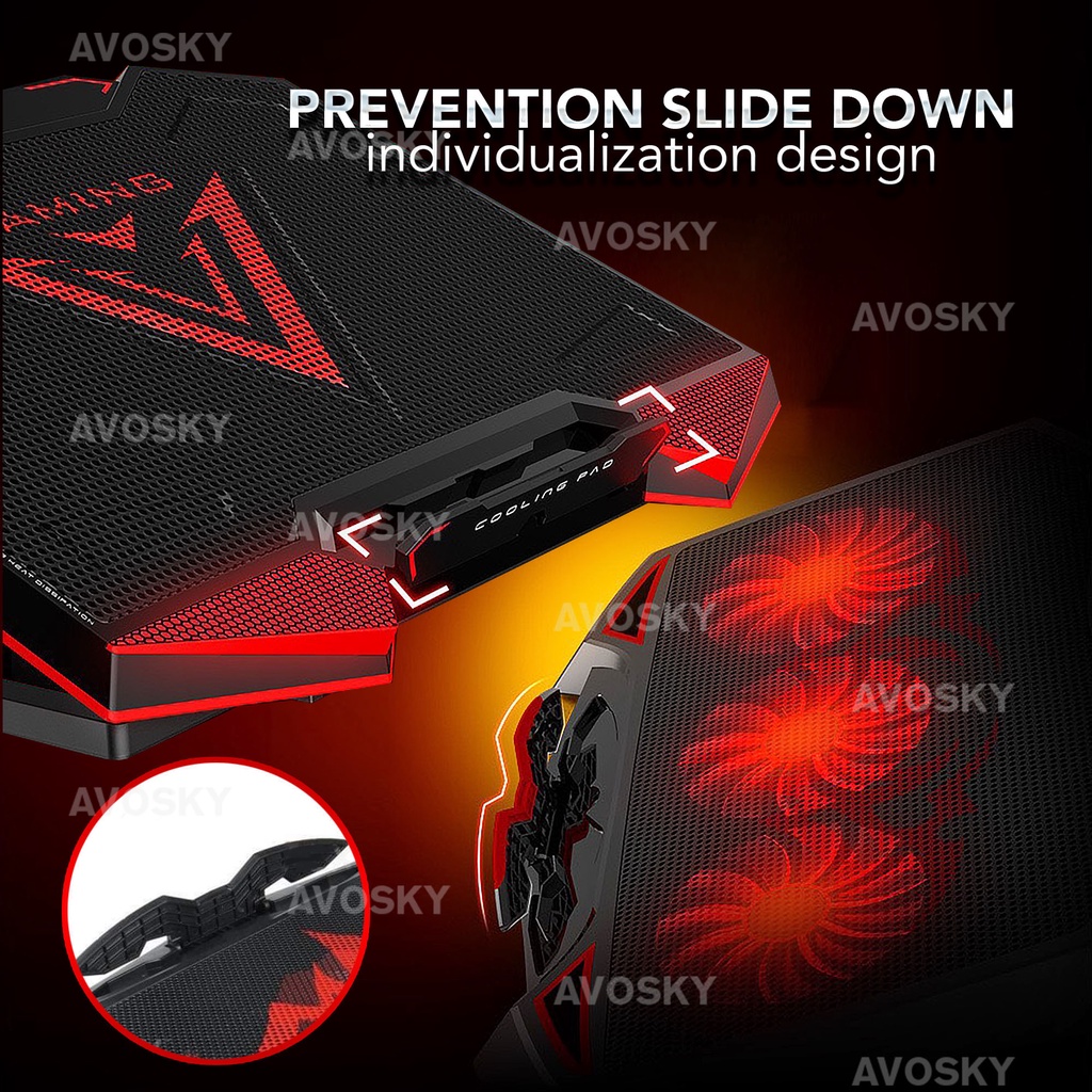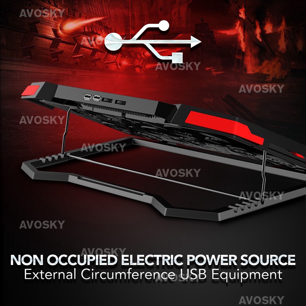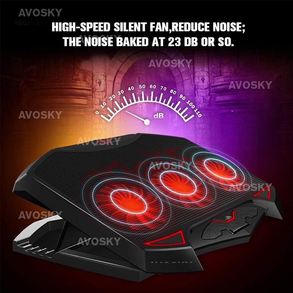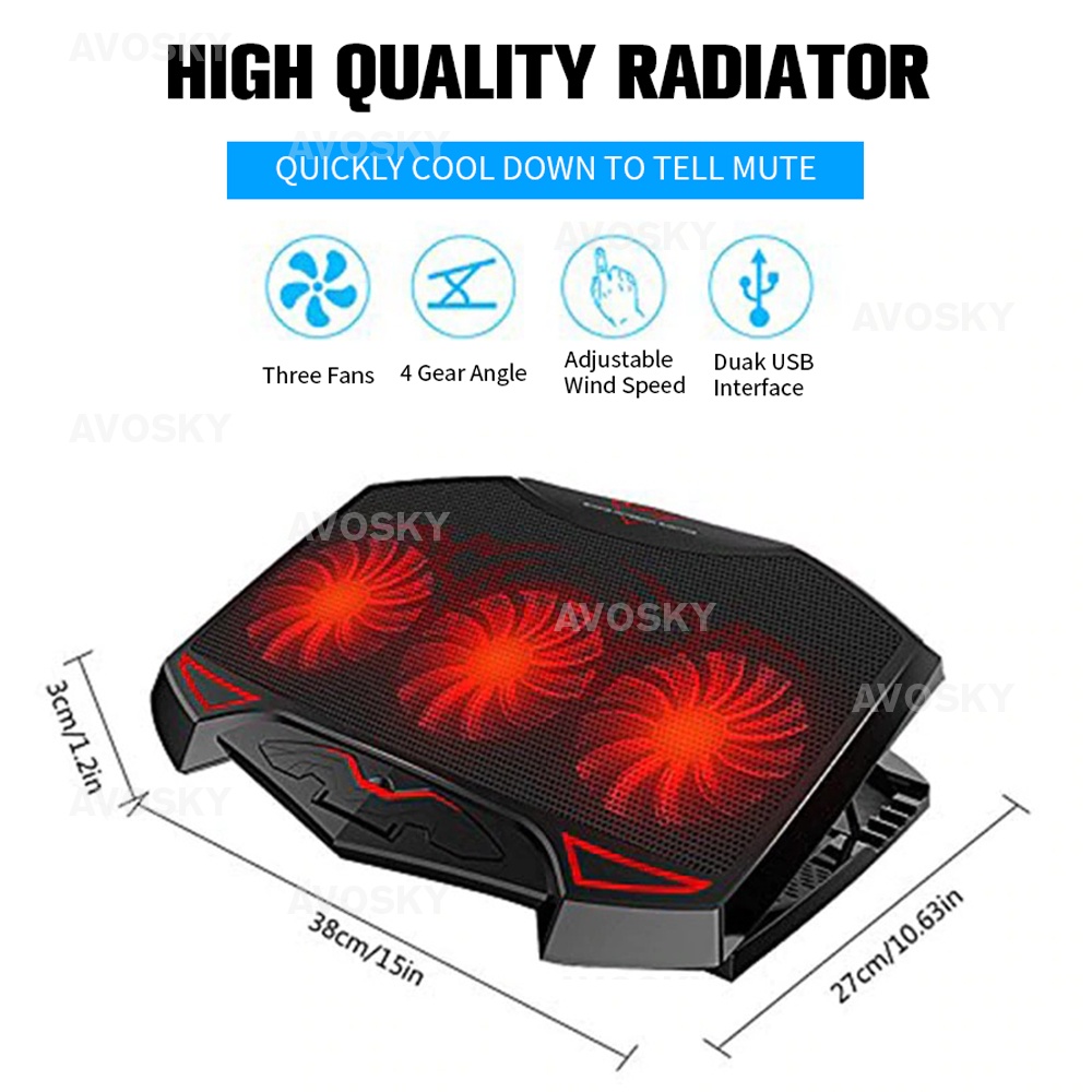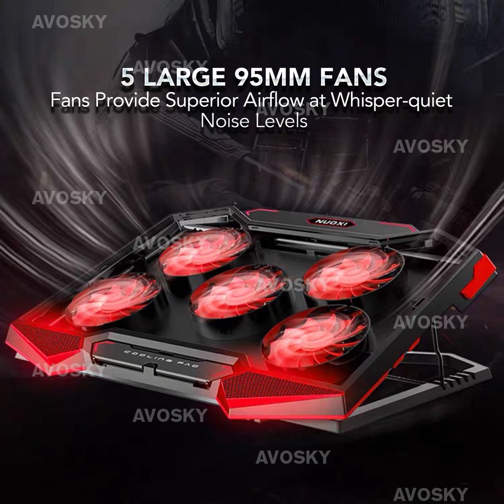 AVOSKY 5X Powerful Laptop Cooler Dual USB LED Fans Cooling Pad Stand 12-17inch Strong Fan Computer Kipas Laptop
