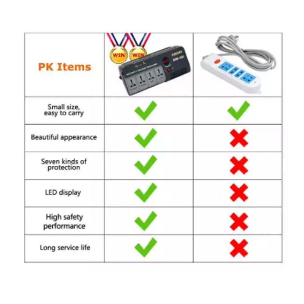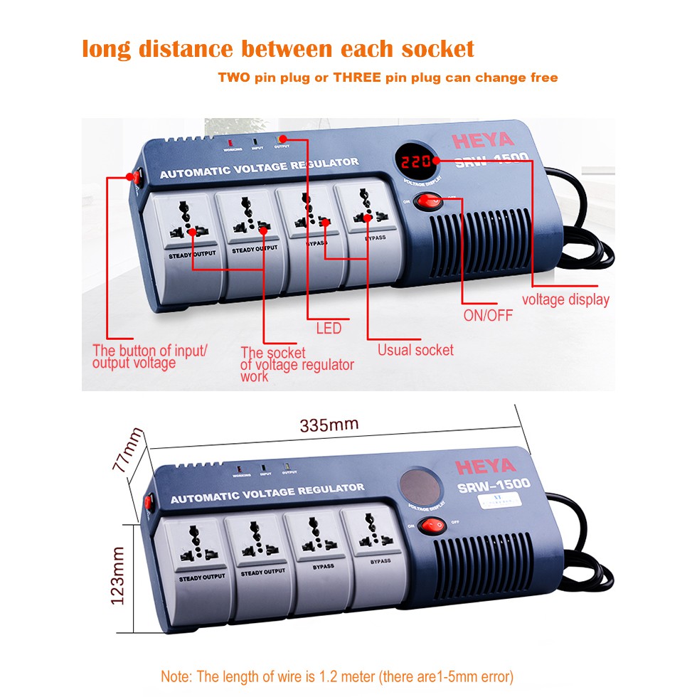 AVR Extension Plug Automatic Voltage Regulator Relay Type Voltage Stabilizer Power 1500VA w LED display