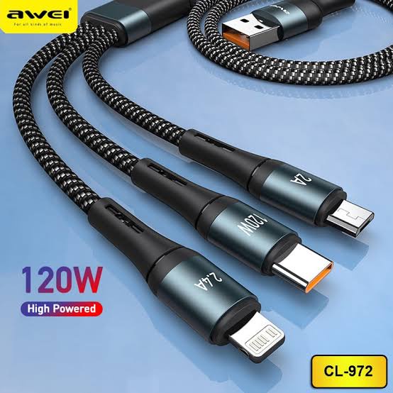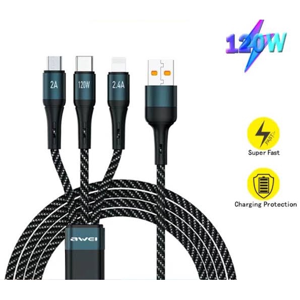 AWEI 3IN1 MULTI CHARGING CABLE 1200MM 20W FAST CHARGING MODEL:-CL-972
