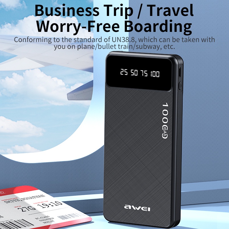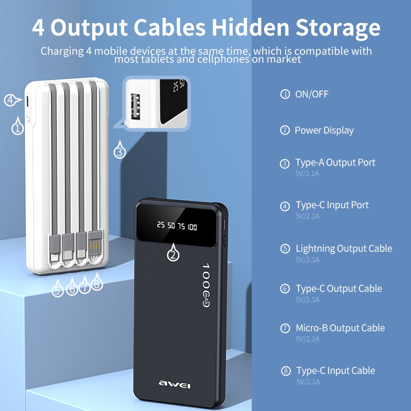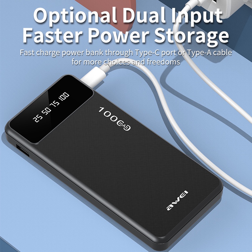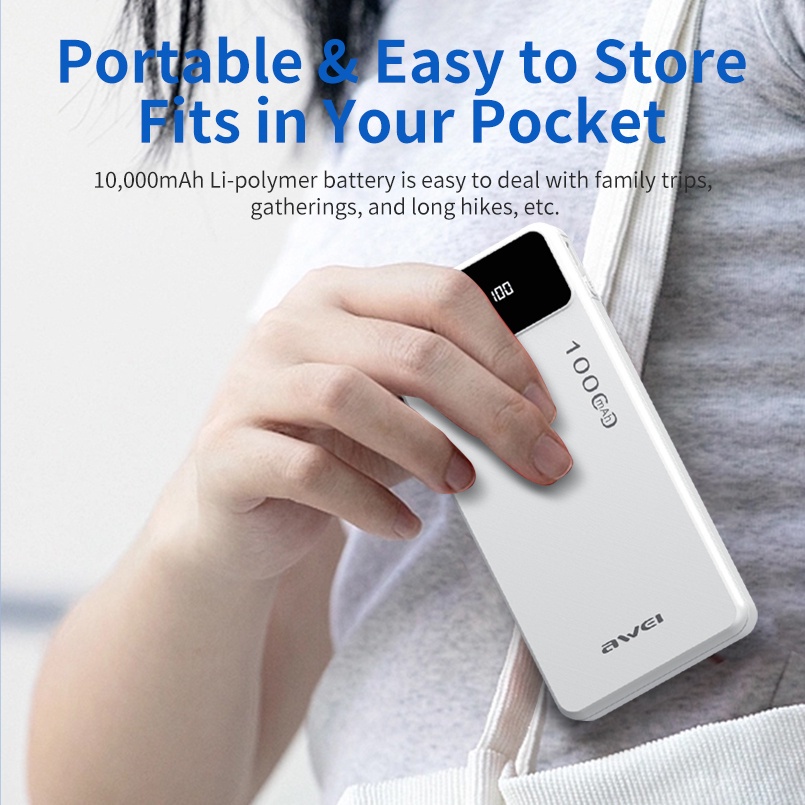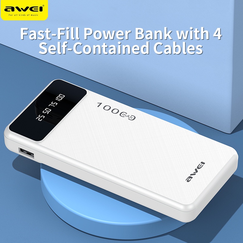 AWEI Mobile Portable Powerbank 10000mAh & Digital Display Power Bank Multiple Output With Cable -P131K
