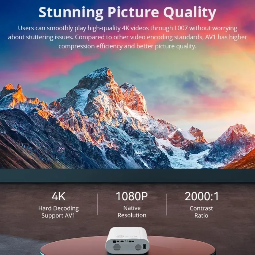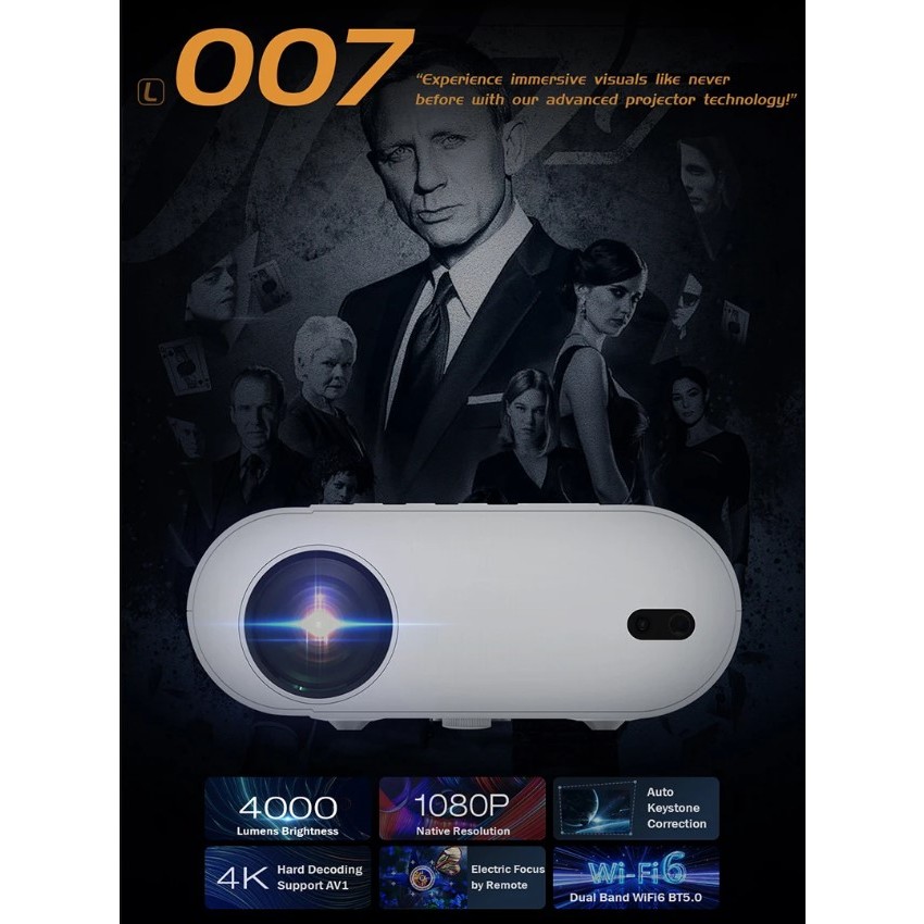 AYISA L007Q Projector Portable 4000 Lumes Dual-band WiFi 6 BT5.0 4K Hard Decoding 1080P LED Video Home Theater Projector