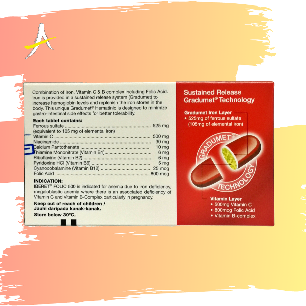 Abbott Iberet Folic 500 30's (Iron, Vit C, B Complex & Folic Acid)