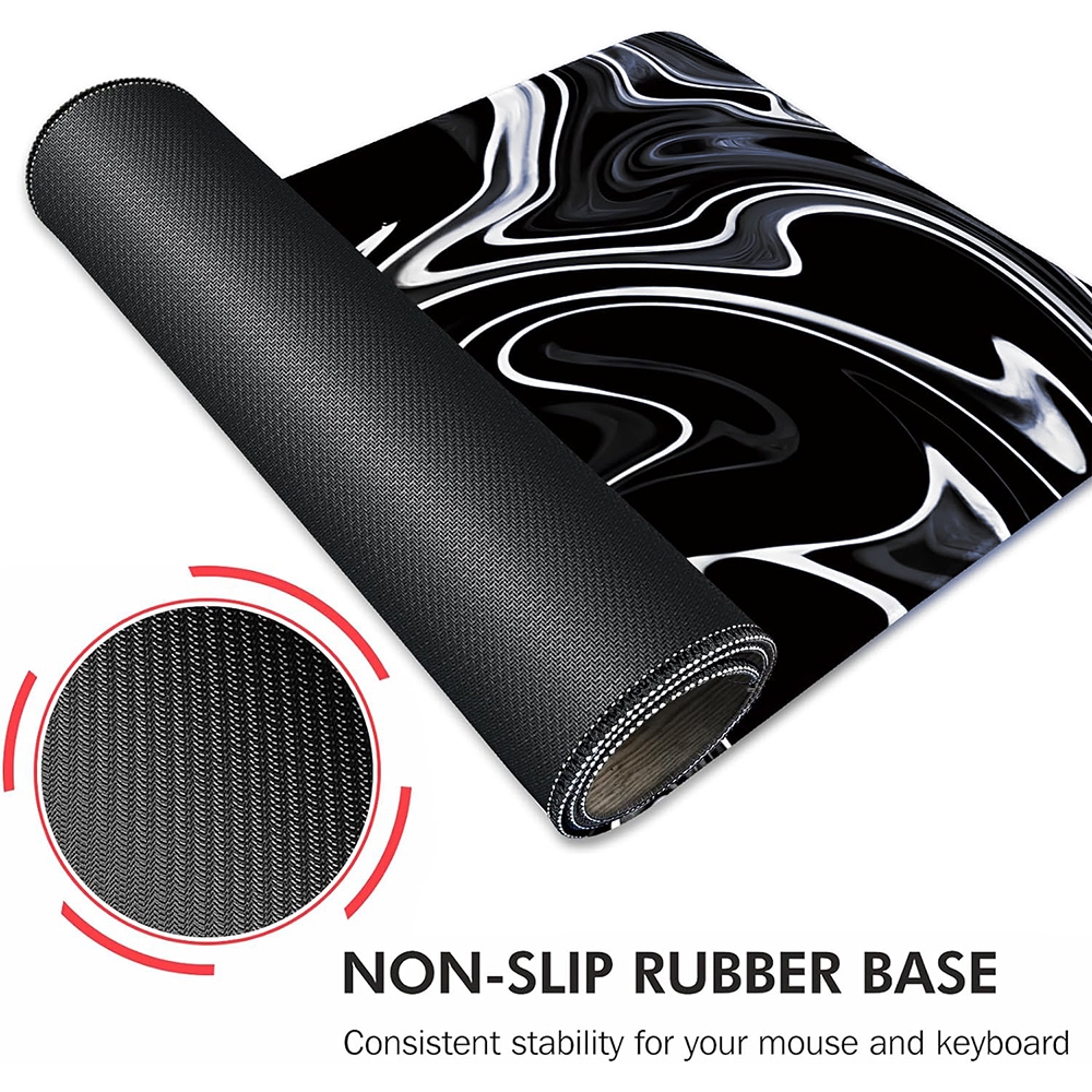 Abstract Black White Ink Liquid Waves Gaming Mouse Pad, Large Mousepads with Non-Slip Base, Long Computer Mouse Mat
