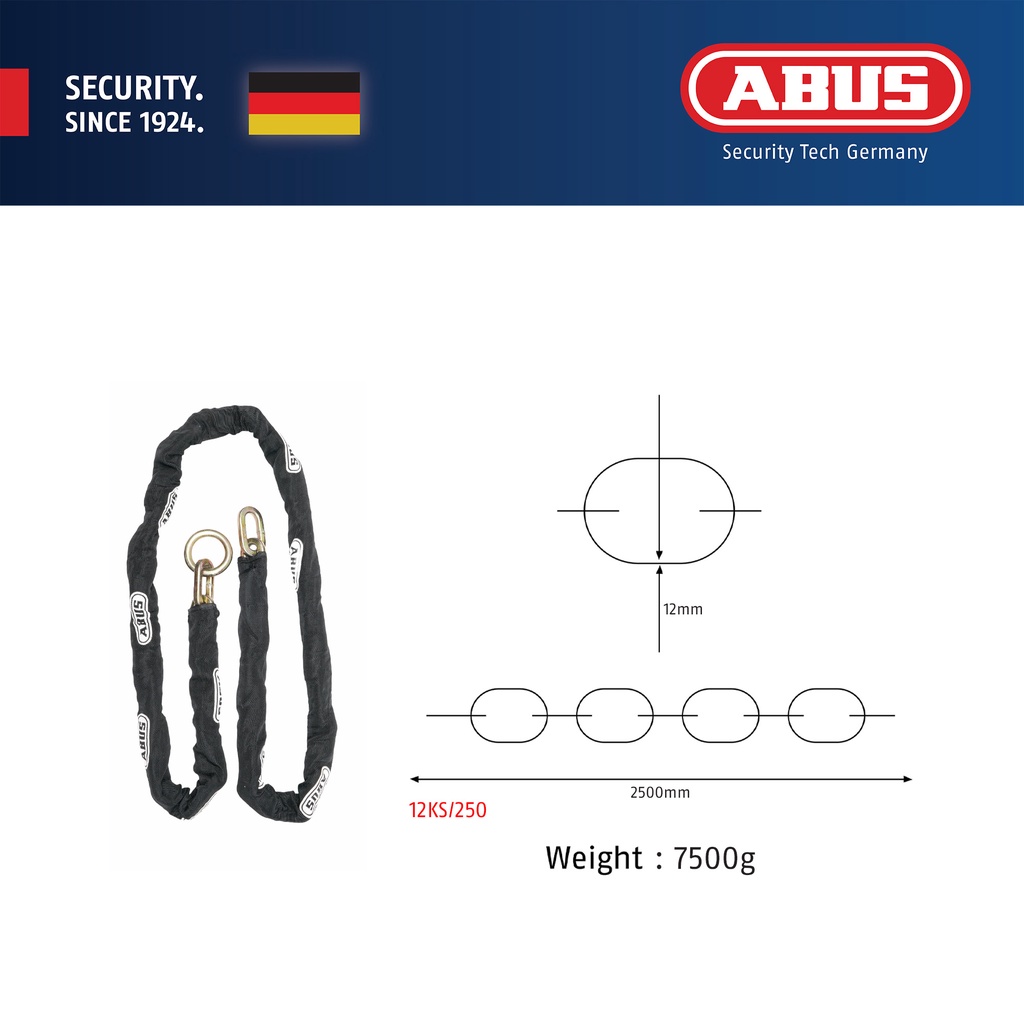 Abus 12KS/80, 12KS/120, 12KS/250 12mm High Security Chain Loop With Fabric Sleeve. Length Available: 80cm, 120cm & 250cm