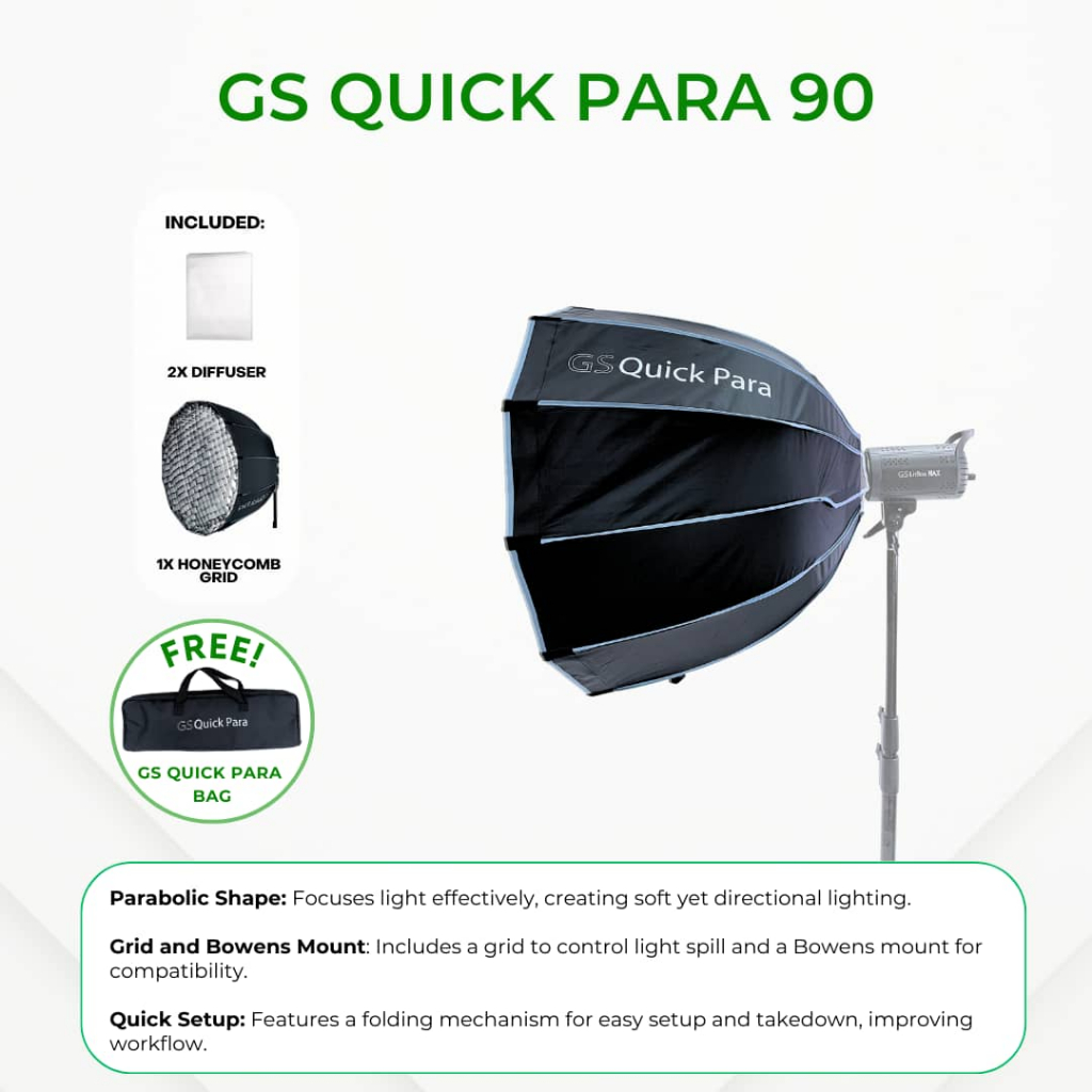 Accessories for GS LitBox Max and LitBox Ultra Softbox Heavy Duty Stand Gobo Reflector QuickPara and Grid Bowens Mount