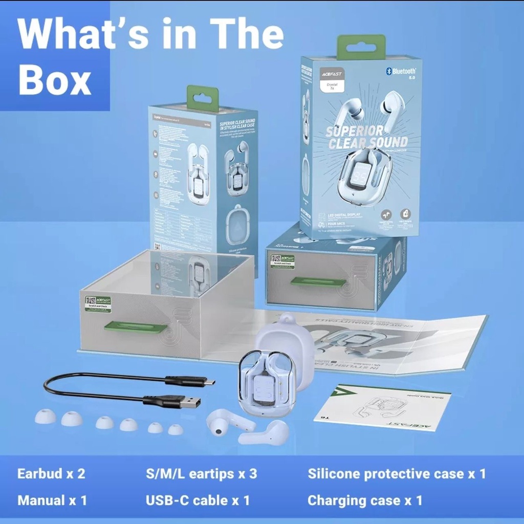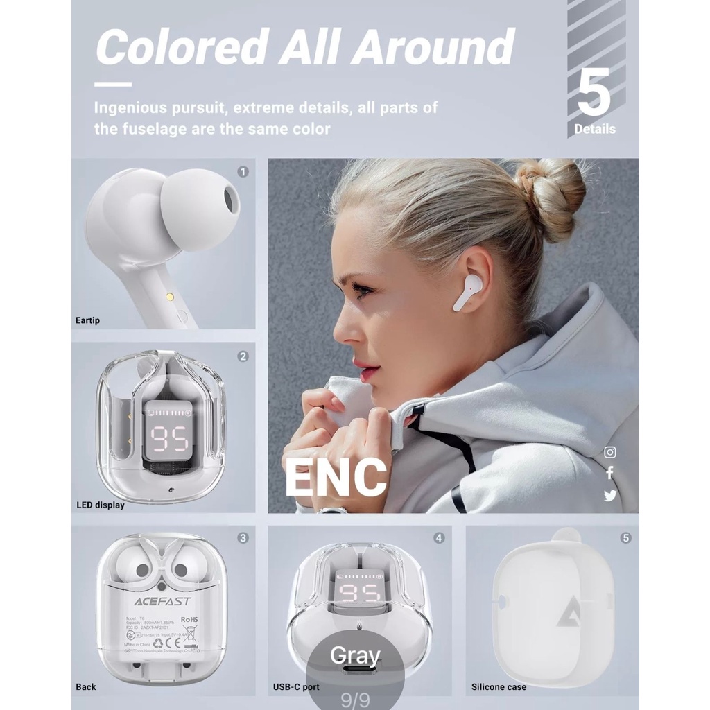 AceFast T6 TWS Bluetooth ENC Earbuds LED Digital Display l Built-in Mic l Waterproof IPX4 l ENC l 1 To 1 Exchange