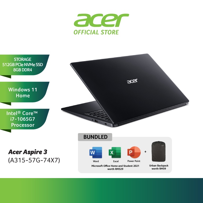 Acer Aspire 3 Intel 10th Gen Core i7 Laptop - Charcoal Black A315-57G-74X7