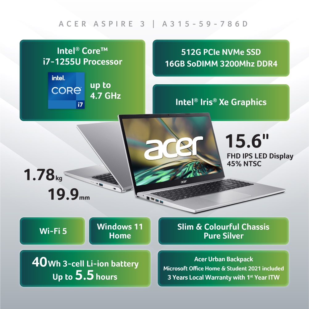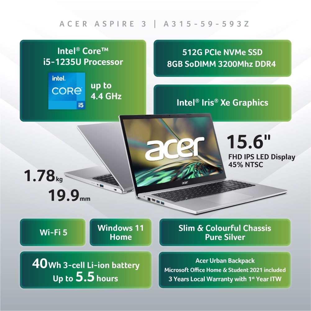 Acer Aspire 3 Intel 12th Gen Laptop - (A315-59-786D Intel i7 / A315-59-593Z & A315-59-57WY Intel i5 )